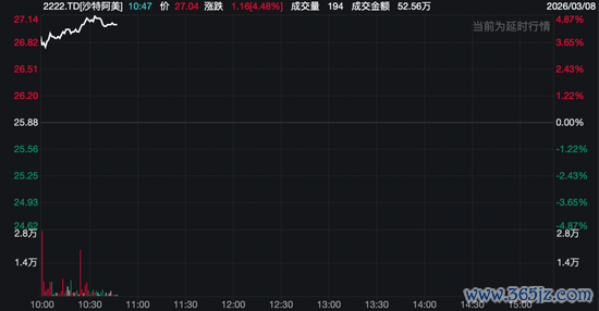 作为区域权重最大的上市公司,沙特阿美股价表现尤为亮眼,截至目前盘中最大涨幅超4%。
