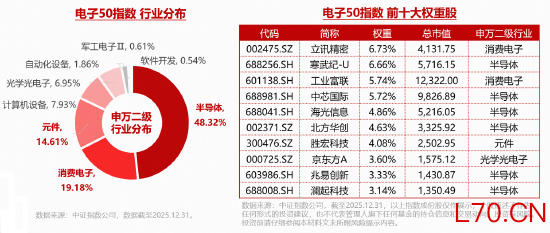风险提示:电子ETF华宝被动跟踪中证电子50指数,该指数基日为2008.12.31,发布于2009.7.22,指数成份股构成根据该指数编制规则适时调整,其回测历史业绩不预示指数未来表现。本文中提及的个股、指数成份股仅作展示,个股描述不作为任何形式的投资建议,也不代表管理人旗下任何基金的持仓信息和交易动向。基金管理人评估电子ETF的风险等级为R3-中风险,适宜平衡型(C3)及以上的投资者,适当性匹配意见请以销售机构为准。任何在本文出现的信息(包括但不限于个股、评论、预测、图表、指标、理论、任何形式的表述等)均只作为参考,投资人须对任何自主决定的投资行为负责。另,本文中的任何观点、分析及预测不构成对阅读者任何形式的投资建议,亦不对因使用本文内容所引发的直接或间接损失负任何责任。基金投资有风险,基金的过往业绩并不代表其未来表现,基金管理人管理的其他基金的业绩并不构成基金业绩表现的保证,基金投资须谨慎。