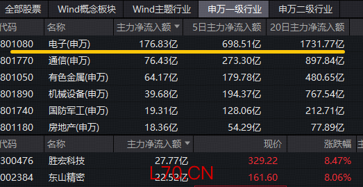 资金面上,截至发稿,电子板块获主力资金净流入超176亿元,近5日、近20日分别狂揽698亿元、1731亿元,板块吸金额持续高居31个申万一级行业首位!电子ETF华宝(515260)成份股胜宏科技获主力资金净流入超27亿元,登顶A股吸金榜,东山精密吸金逾22亿元,跻身A股吸金榜第三位。