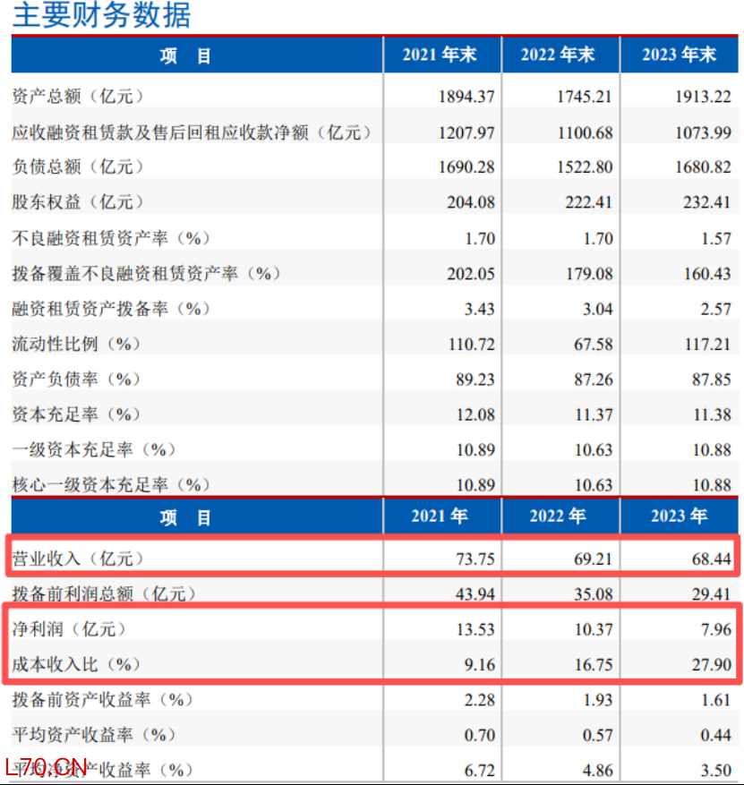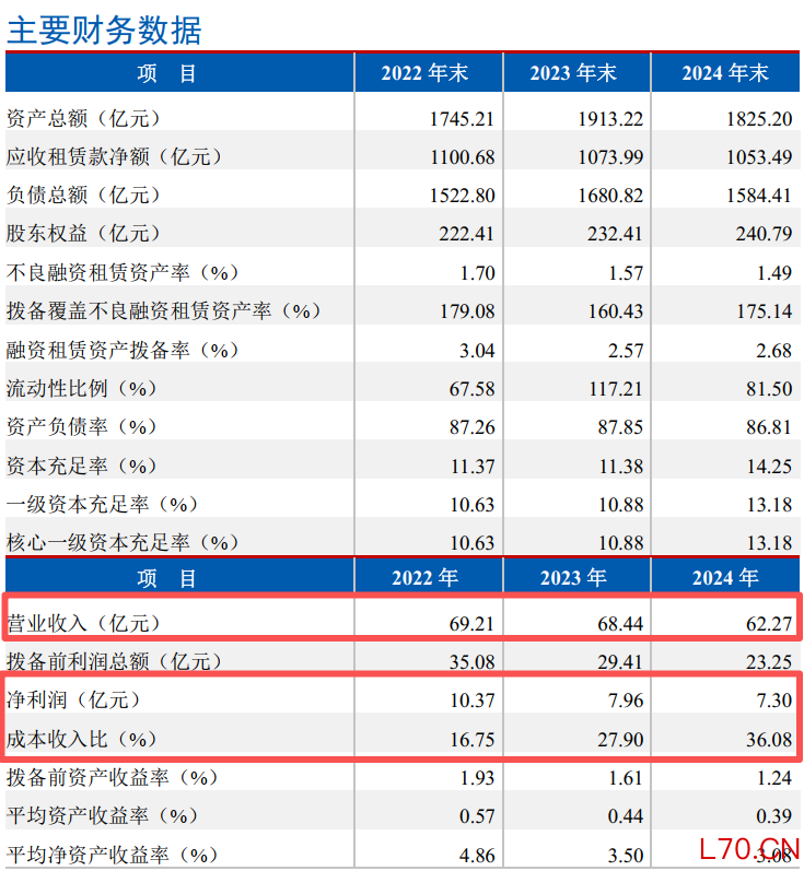 评级报告指出,民生金融租赁2024年末的营业收入及净利润均呈现下行态势,盈利能力有待提升。