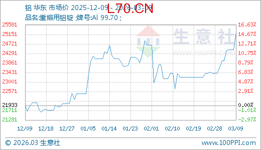 03月09日铝25223.33元/吨 5天上涨5.24%