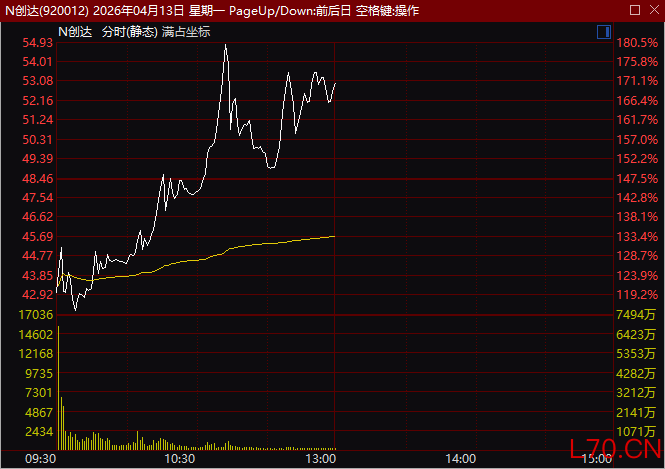 A股市场今天有一只新股上市,为创达新材,上午盘中该股涨幅超过180%。