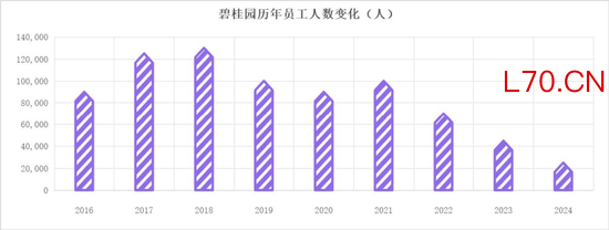 数据显示,2018年末碧桂园员工总数高峰期最高达到13.14万,而到2025年中,这一数字已锐减至1.79万,7年间减员整整11.35万,降幅高达86%。