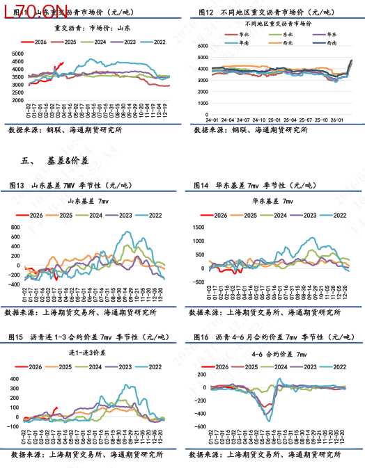 【2】现货基本面:截止3月31日下午14;00,隆众调研统计的重交沥青山东地区市场价4420元/吨,环比持平;华东地区市场价4710元/吨,环比下跌1.9%;华北地区市场价4450元/吨,环比持平。华南地区市场价4580元/吨,环比上涨0.22%。西南地区市场价4750元/吨,环比持平。