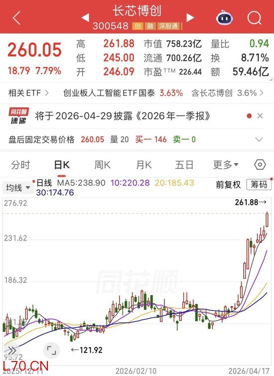 进入2026年,在AI算力需求持续爆发、技术迭代与供给瓶颈共同驱动下,光通信板块成为市场最亮眼的主线之一。长芯博创股价今年以来上涨超过80%,在4月更是接连突破新高,4月17日收涨7.79%,盘中一度创下261.88元/股历史新高。